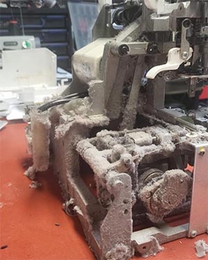 Pour votre surjeteuse, par exemple, nous trouvons régulièrement des poussières de tissus sous les capots et cela peut entraîner des dérèglements. Un changement ou un aiguisage des couteaux est souvent nécessaire.